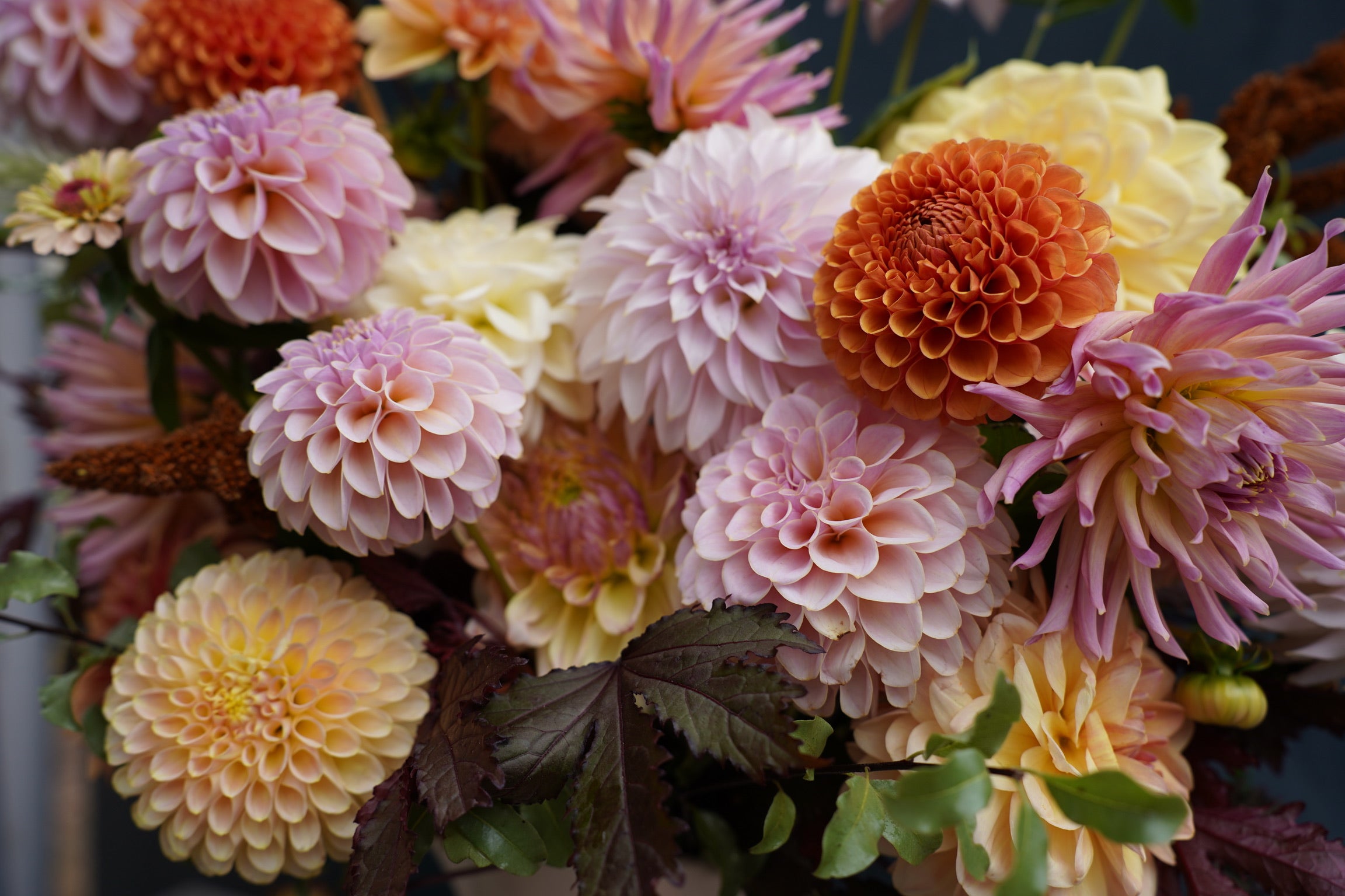 Please describe your preferred color palette in the form below, and we will attempt to accommodate based on available flowers that are blooming that week.