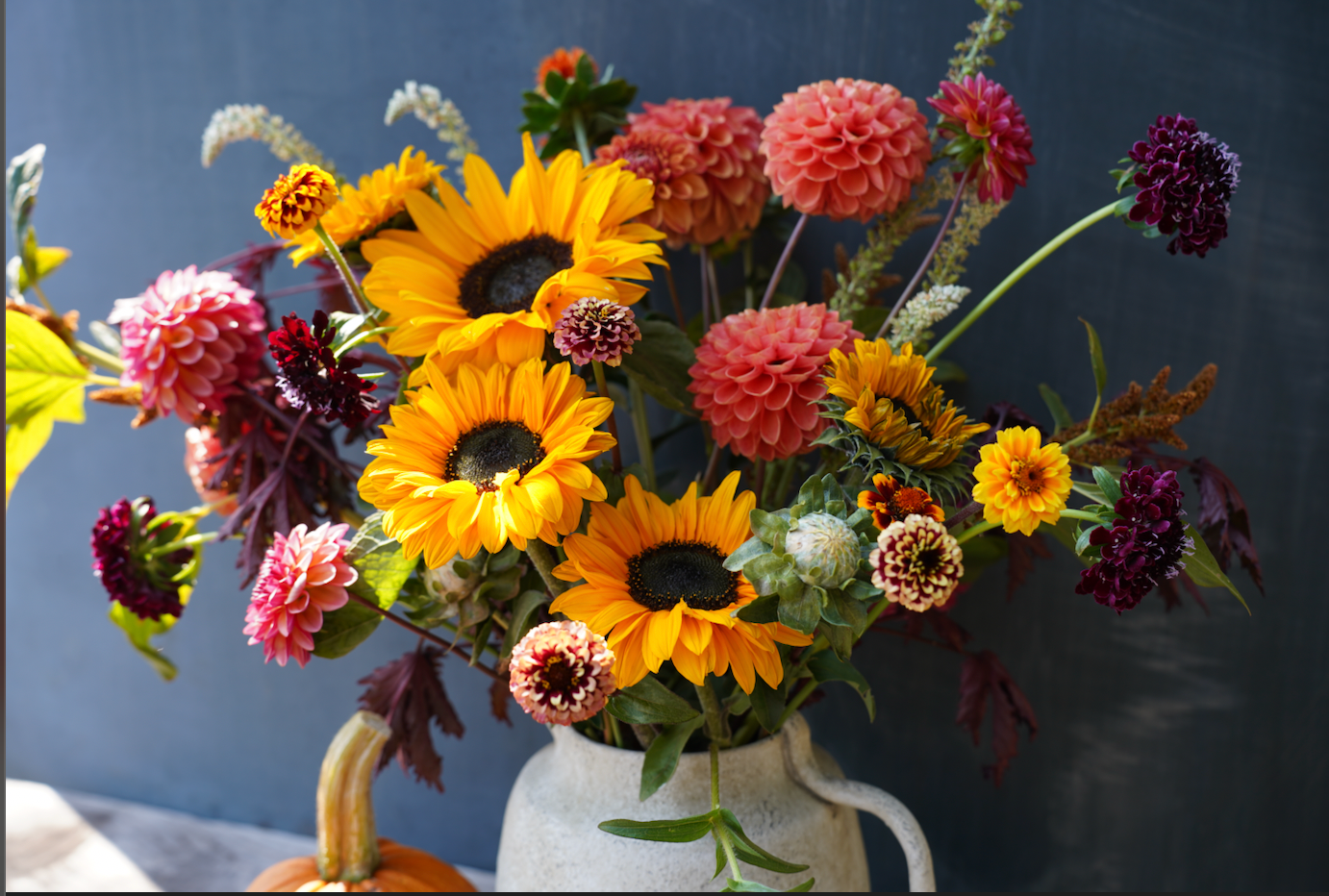 You are invited to come to our 10-acre farm on the Mendocino Coast to harvest flowers for your very own bouquet. Stroll through our cut-flower field to gather snapdragons, zinnias and other beautiful blossoms, all with the smell of the sweet sea breeze and the serenade of seals barking in the distance. While you're on the farm, we encourage you to walk through our two dozen rows of thousands of dahlia plants, stroll by our pumpkins and winter squash that are ripening for our late-September harvest, or hike up the hill a bit to catch a peak of the ocean. And, of course, bring your camera for your very own photo op!